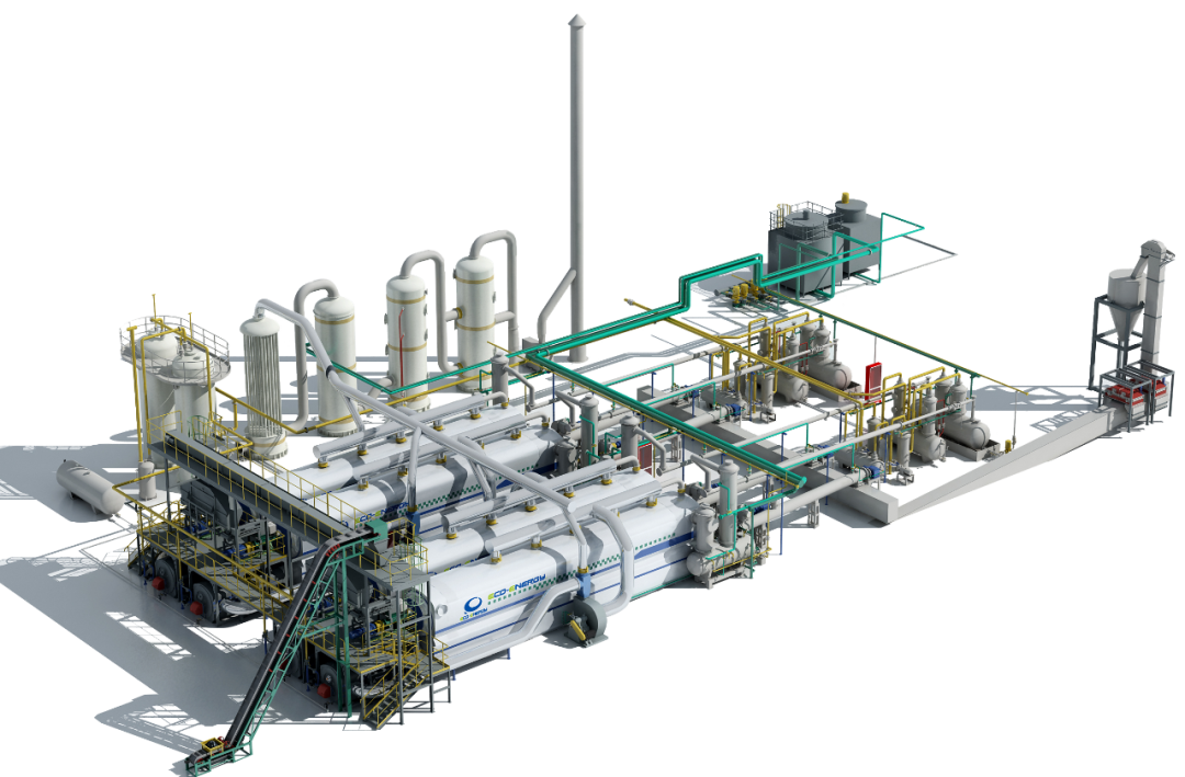 恒譽環(huán)保自主研發(fā)的工業(yè)連續(xù)化有機廢棄物熱解生產(chǎn)線通過對有機廢棄物中的高分子聚合物進行較徹底的分解,使其回到小分子或單體狀態(tài),產(chǎn)出液態(tài)(如燃料油)、固態(tài)及氣態(tài)產(chǎn)物,在安全、環(huán)保、連續(xù)穩(wěn)定運行的前提下,實現(xiàn)對有機廢棄物的無害化、減量化處置和資源化利用,具備“原料適應(yīng)性廣、處置成本低、處理效果好、環(huán)境效益好、智能自動化”等優(yōu)勢,是經(jīng)成功運行驗證的成熟、穩(wěn)定的工業(yè)連續(xù)化熱解裝備。