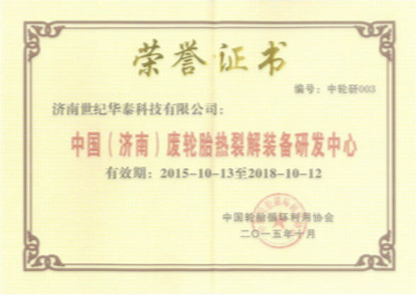 2015年10月,公司被授予“中國(山東)廢輪胎熱裂解裝備研發(fā)中心”